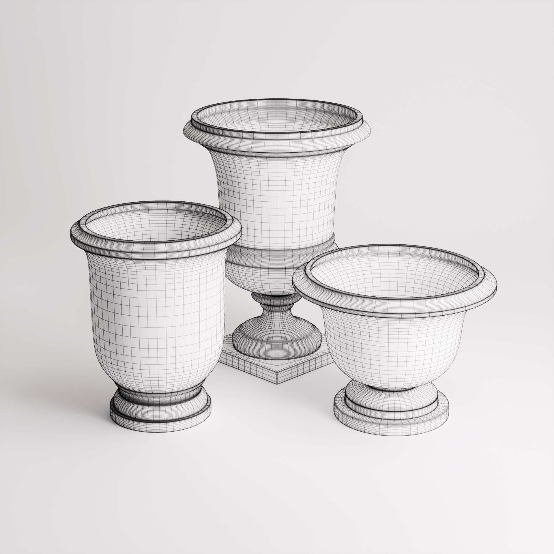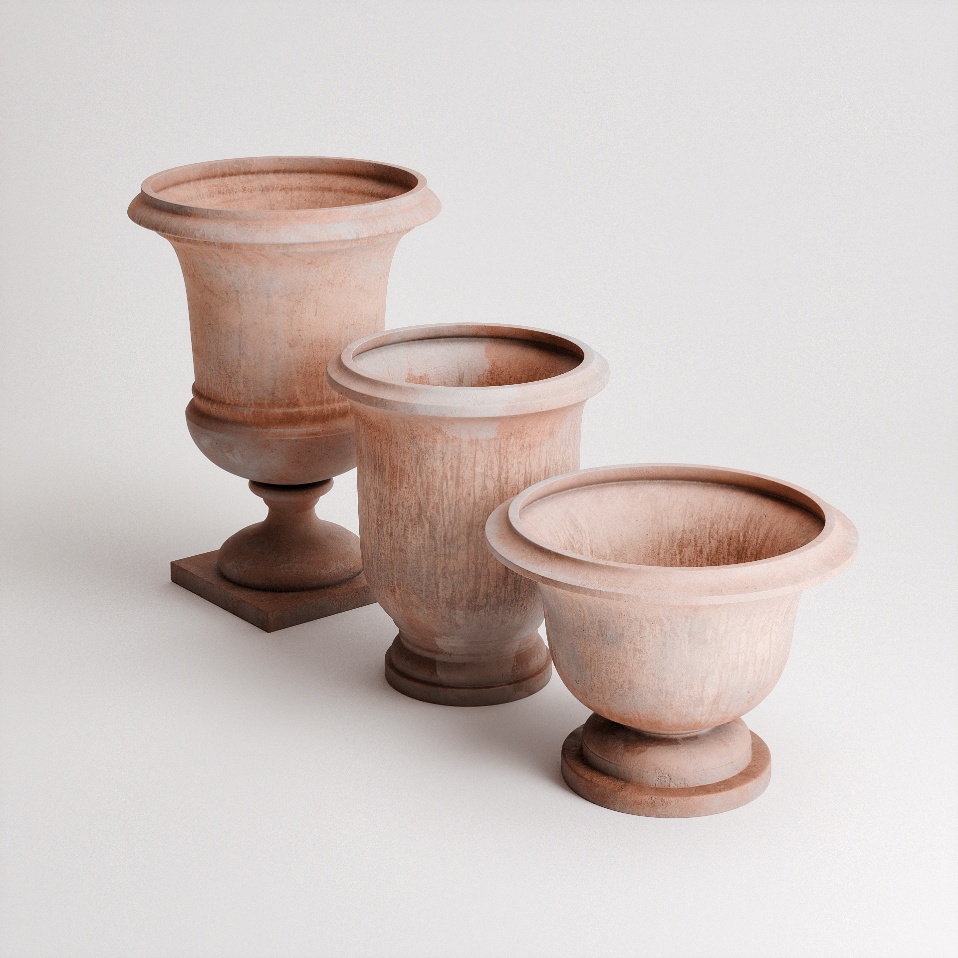 Rooted in the sun-baked pottery traditions of the Mediterranean, terracotta planters evoke timeless elegance and cultivation. Their classical forms and naturally weathered, earthen finish impart an authentic sense of age and organic warmth. Perfect for designers and visualizers seeking to add lived-in realism and subtle historical depth to the scenes.